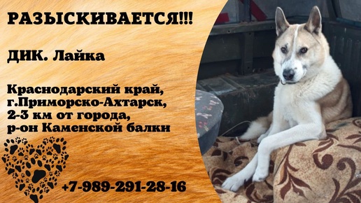 Пропала собака! ДИК. Лайка. Краснодарский край, г.Приморско-Ахтарск, 2-3 км от города.