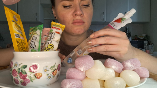 Мукбанг моти, желейные полоски, зефир, странный напиток| Корейские, японские сладости #мукбанг #фудблогер #обзореды