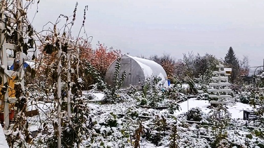 Огород в снегу, высадила первые цветы, вкусный пирог....