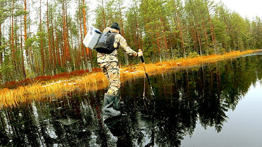 ПЕРВЫЙ ЛЁД 2024-2025. ОПАСНОЕ ТАЁЖНОЕ ОЗЕРО. НАШЁЛ ЯГОДЫ И ГРИБЫ ТАКОГО НЕ ОЖИДАЛ.