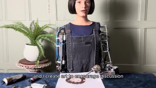 Робот-художник Ai-Da и ее картина за 750 000 долларов США на аукционе Sotheby's