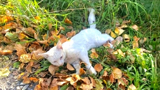 История о белом коте который не мог идти и ждал что его кто-то заберёт с дороги.