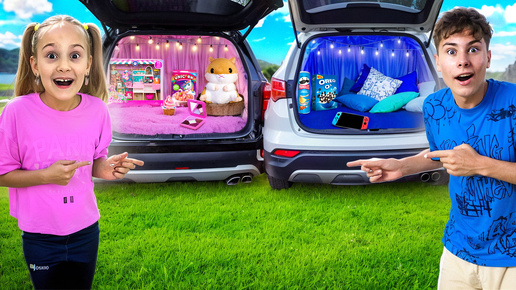 Сделали 2 СЕКРЕТНЫЕ КОМНАТЫ В МАШИНЕ по ЦВЕТАМ Синий цвет VS Розовый