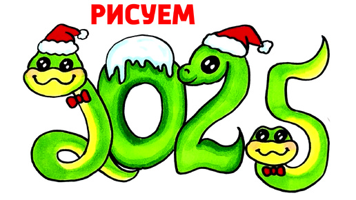 Как нарисовать Новогодние Цифры 2025 Новогодний Рисунок на Новый Год Змеи Рисунки Юльки 2025