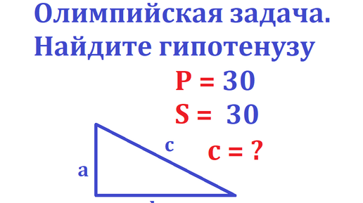 Олимпийская задача. Найдите гипотенузу по периметрй и площади треугольника