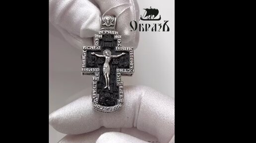 Крест «Распятие, Ангел Хранитель», серебро 925 проба эбен (арт. МРК-008)