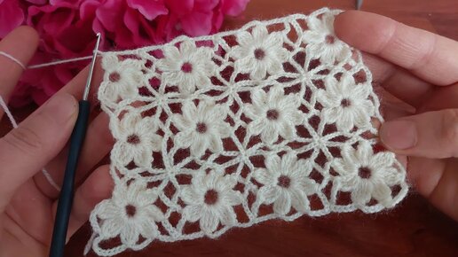 ВАУ! Великолепный цветочный узор крючком — модель шали и покрывала в технике филе