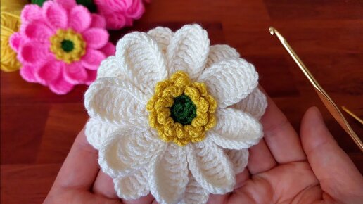 Чудесный 3D цветочный узор крючком — урок для начинающих