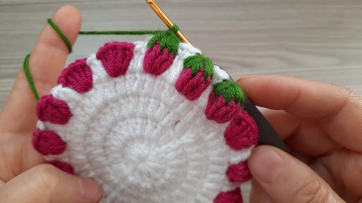 Супер простой урок крючком — подставка с клубничным узором, пошаговая инструкция