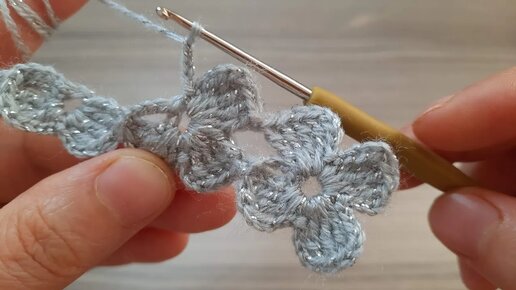 Вау! Очень красивый цветочный узор крючком с серебряной пряжей — вязание с любовью