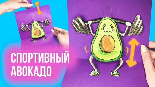 Открытка «Спортивный авокадо» из бумаги своими руками / ОБЪЕМНАЯ ОТКРЫТКА / Динамическая открытка