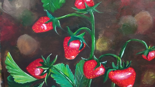 Пишем масляными красками землянику. Лист А4. Как ухаживать за земляникой. Сорта земляники. Ягоды. Видео релакс. Входим в мир Дзена, релакса.