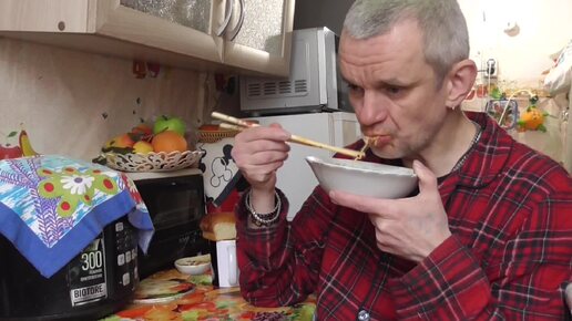 мукбанк китайская лапша острая говядина молоко хороль и булочка с изюмом