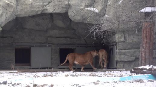 Ричард и Найтирия гуляют в вольере по снежному покрову. 08.11.2024
