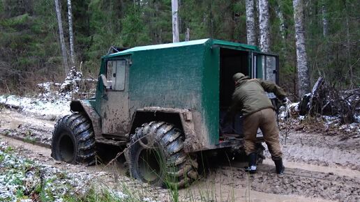 Поиск брошенной техники в лесу. Вездеход сломан. Вызываю батю на помощь. Нашел ремонтный стан в лесу