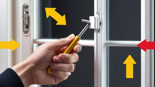 Устраняю щели регулирую пластиковое окно, по вертикали и горизонтали.