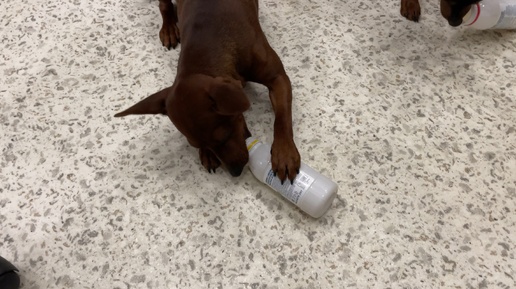 Что будет, если собаке Цвергпинчеру дать бутылку из под ряженки Лакоста и Лисица