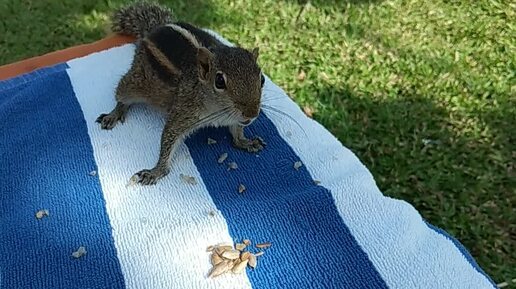 Бурундук ест семечки.