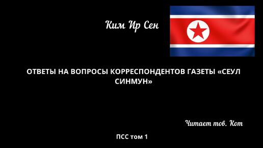 Ким Ир Сен "ОТВЕТЫ НА ВОПРОСЫ КОРРЕСПОНДЕНТОВ ГАЗЕТЫ «СЕУЛ СИНМУН»"