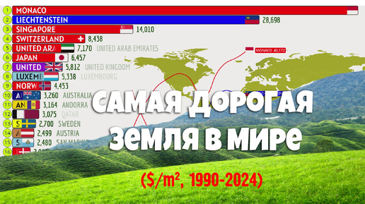 Сколько стоит земля в разных странах мира? ($/кв. м, 1990-2024)