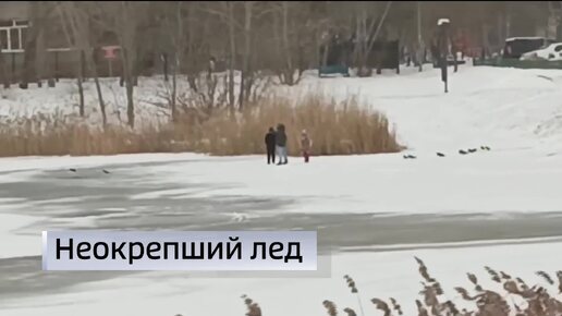 Семья с ребенком вышла на прогулку по неокрепшему льду в Тюмени