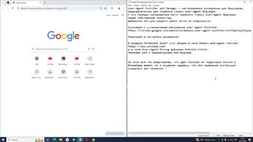 Youtube. Решение проблемы с замедлением с помощью расширений: User-Agent Switcher | Goodbye DPI