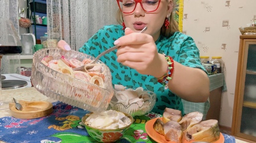 МУКБАНГ СЕЛЁДКА СЛАБОЙ СОЛИ И СКУМБРИЯ ХОЛОДНОГО КОПЧЕНИЯ САЛАТИК
