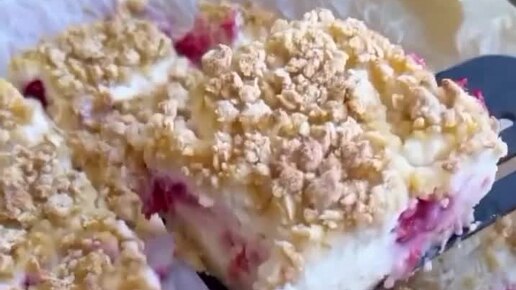 Пирог из творога с малиной.