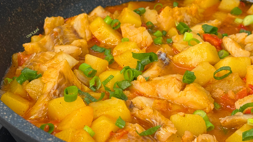 Полноценный ужин с рыбой на скорую руку в одной сковороде. Готовлю сочное рагу с рыбой, никогда ещё так вкусно не получалось