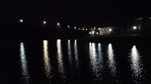 Мерцательное отражение фонарей в реке (Кашин, 19:55, 09.11.2024)