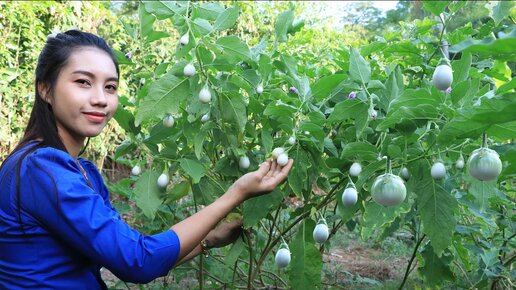 Урожай круглых баклажанов и приготовление карри с куриными ножками – Ароматные блюда из деревни.