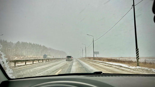 Пирог удался ! С довольным лицом еду домой в метель на трассе !