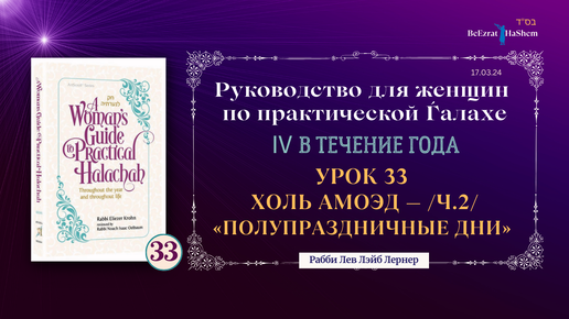 𝟯𝟯. Холь аМоэд - Полупраздничные дни (ч.2) - Руководство для женщин по практической Ѓалахе