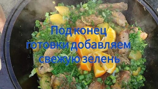 Утка с овощами и фруктами в казане. Музыка: MorningsМузыкант: Jeff Kaale