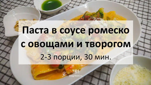 Паста в соусе ромеско с овощами и творогом
