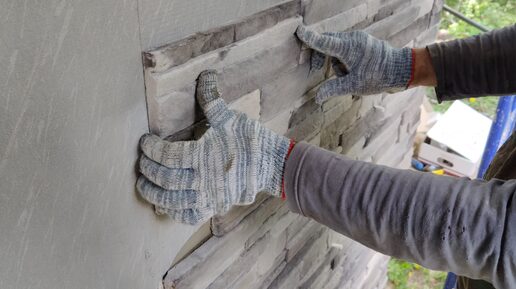 Утепление фасадов железобетонного дома пенопластом ППС16ф 180мм, двойной базовый армирующий слой, облицовка фасадов камнем White Hills