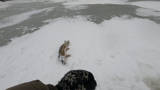 Эта щука покрупнее. Самая крупная на этой рыбалке.