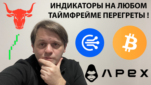 🚨ВСЕ ИНДИКАТОРЫ ПЕРЕГРЕТЫ НА BTC! ПРОЛИВ БЛИЗОК?! KAS +60%/WLD +20%. ТЕХ АНАЛИЗ #BTC #APEX
