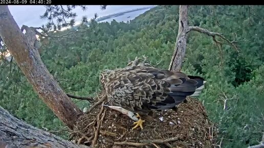 9.08.2024 Камычи. Папа принёс рыбу. И снова дочке. Тойма долго летала вокруг, пока не села в гнездо
