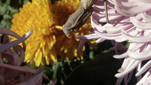 Китайская хризантема 'Феникс' и медитирующий богомол. Бал хризантем 2024. Никитский ботанический сад