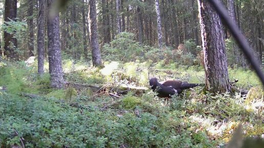 История глухаря на черничнике. Действующие лица – глухарь, лиса, лось, медведь, он же Хозяин.