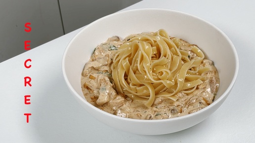Ужин за 14 минут - лапша с курицей и грибами в сливочном соусе