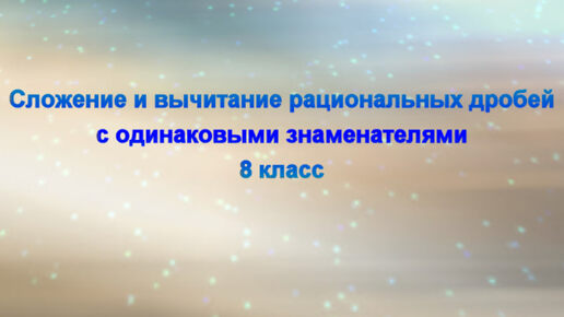 Математика - это легко! Сложение и вычитание рациональных дробей с одинаковыми знаменателями. 8 класс. ВПР. ОГЭ.