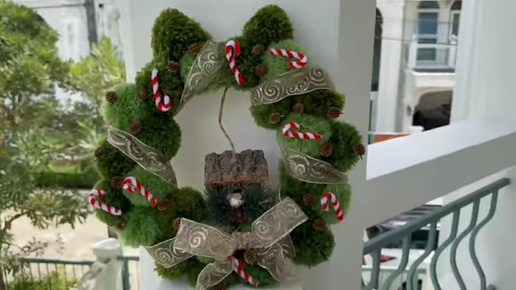 Рождественский венок🎄🎄🎄 своими руками из цветной пряжи 🧶🧶🧶