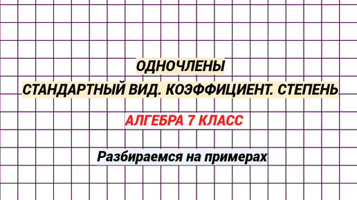 Одночлены. Коэффициент, степень, стандартный вид. Быстро разбираемся. Тренировка
