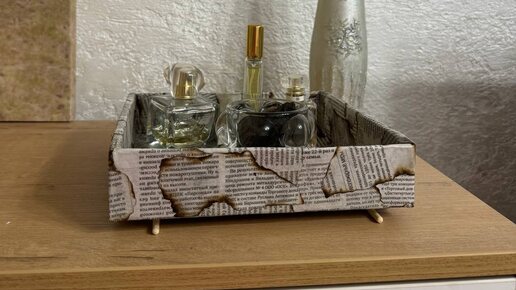 Взяла старые ненужные газеты,коробку из под печенья и сделала органайзер для мелочей.