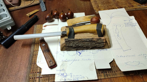 Поворотный ложемент для рукояти ножа, для выполнения инкрустации.