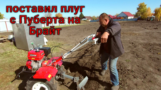 Осенью фрезерую небольшой участок под грядку с чесноком, а оставшуюся землю на огороде вспахиваю плугом.