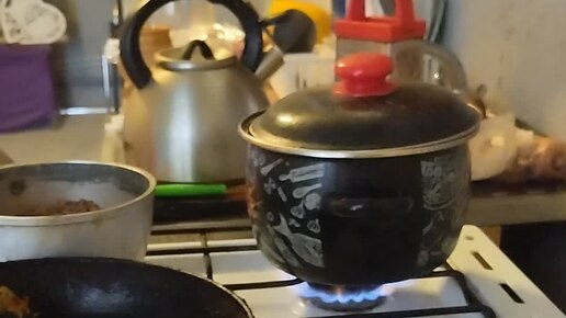 Результат моей готовки завтрака одной рукой 12 ноября- гречка, яичница с кабачком, морковью и куриным филе