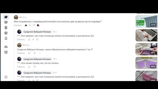 Переход с резинки 1х1 на вязание резинки 2х2.